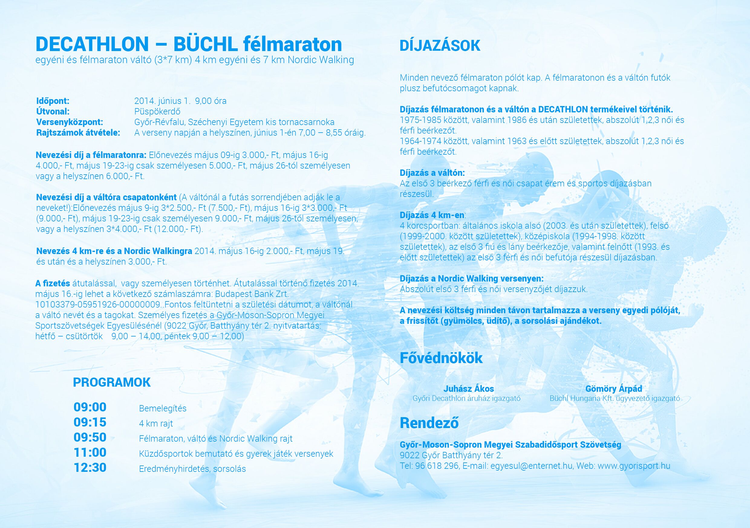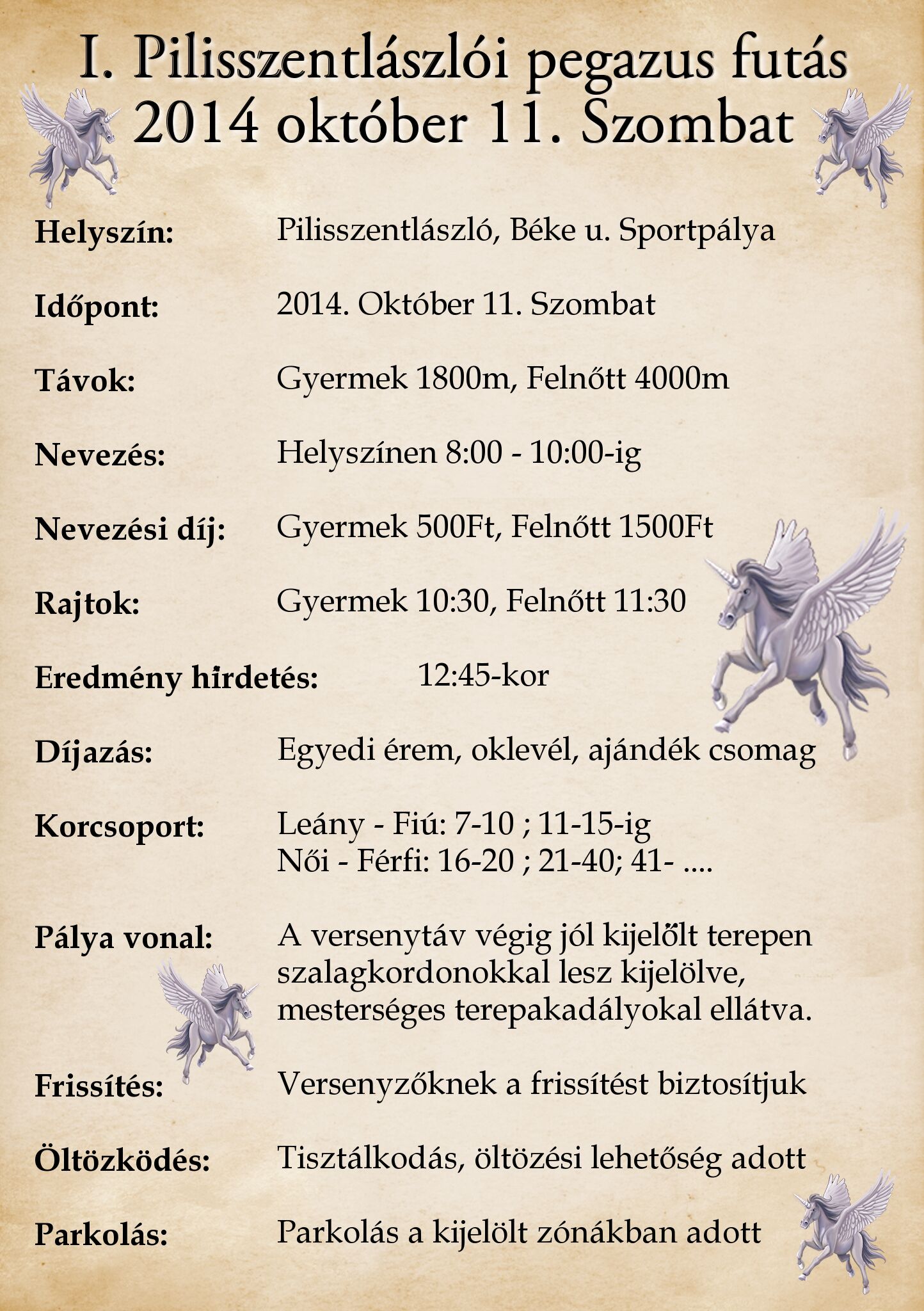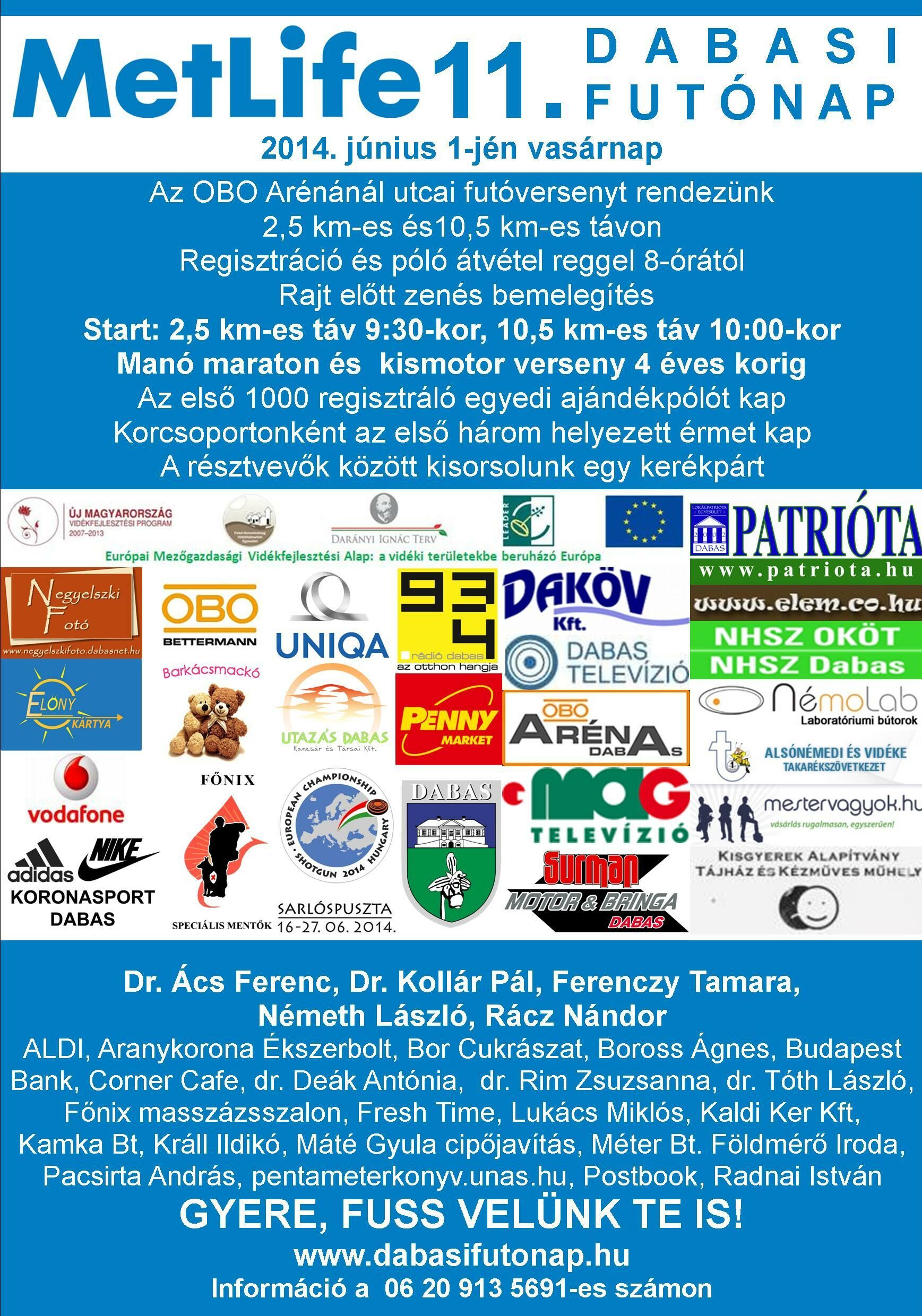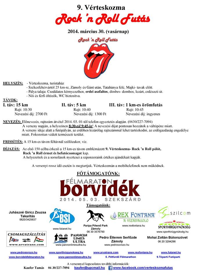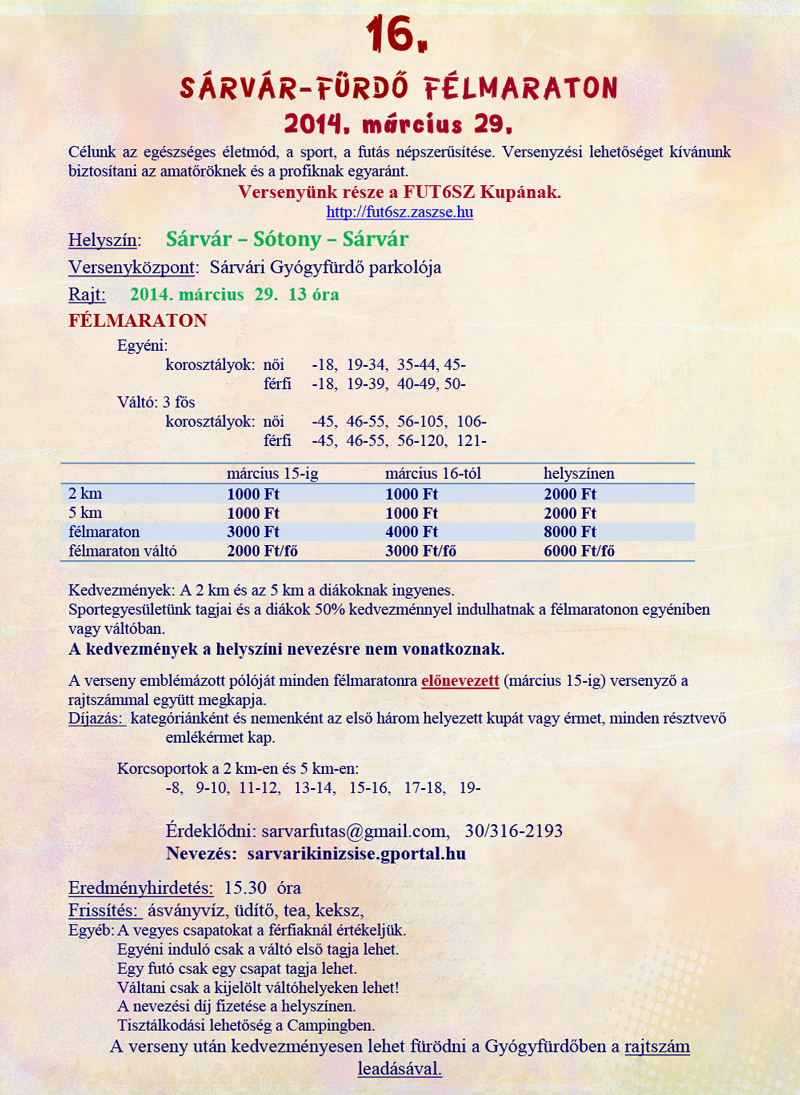 Január 01. hét Jan.01.sze. Újévi Futás (3.)- 12.00 óra - Debrecen - R: DKM SE 6km. kiírás nem listás Jan.01.sze. Szufla Újévi Futás - R: Szufla 6km. kiírás nem listás Jan.04.szo. Szigetfutás - Budapest - Margitsziget 5,3km. kiírás eredmények Jan.05.vas. Gútai vízkereszt maraton (4.) és félmaraton - Szlovákia 21-42k. kiírás eredmények 02. hét Jan.06.hét. Háromkirályok Futóverseny - Kassa - Szlovákia 5km. kiírás eredmények Jan.11.szo. Oxigén Kupa - terepfutóverseny - Debrecen - R: Oxigen (korosztályos) 1,5-2,5-5-10km. kiírás eredmények Jan.11.szo. Mura Kupa futóversenyt (3.) - Murakeresztúr 6-12-21km. kiírás eredmények Jan.12.vas. Várkúti hegyifutó versenysorozat (21.) - 2. forduló - R: Egri Spartacus SE 4-8-16km. kiírás eredmények Jan.12.vas. Szentendre crossfutás - R: Futapest 4-12km. kiírás eredmények 03. hét Jan.18.szo. Etyek-New York Félmaraton 22km. kiírás nem listás 04. hét Jan.26.vas. Etyek cross - R: Futapest 5-13km. kiírás eredmények Jan.26.vas. Siracusa City maraton (15.)- országúti futóverseny - Italia 10-21-42km. kiírás eredmények Február 05. hét Feb.01.szo. Szigetfutás - Budapest - Margitsziget 5,3km. kiírás eredmények Feb.01.szo. Budapest Fedettpályás Atlétikai Bajnoksága 0,06÷3km. kiírás eredmények 06. hét Feb.08.szo. Margita Téli Maraton (8.)- Gödöllő - R: Margita 344,2 6-12-20-40km. kiírás eredmények Feb.08.szo. Domb futás - Kecskemét - R: KÖD SZSC 0,8-3,5-7km. kiírás eredmények Feb.09.vas. Csikóváralja cross - terepfutóverseny - Pomáz - R: Futapest 6-12km. kiírás eredmények Feb.09.vas. Kaposvár Dombjai Félmaraton (4.) - egyéni és váltófutás (korosztályos) 21km. kiírás eredmények 07. hét Feb.15.szo. Négy évszak maraton - Pusztaszabolcs - R: PSZE 10km. kiírás eredmények Feb.15.szo. Oxigén Kupa - terepfutóverseny - Debrecen - R: Oxigen (korosztályos) 1,5-2,5-5-10km. kiírás eredmények Feb.16.vas. Várkúti hegyifutó versenysorozat (21.) - 3. forduló - R: Egri Spartacus SE 4-8-16km. kiírás eredmények Feb.16.vas. Tündér-hegyi terepfutó verseny (1.) - Pétfürdő - R: VBTSE 16km. kiírás eredmények 08. hét Feb.22.szo. Latyakfutás (10.) - Bogács - R: TTF SE 14km. kiírás eredmények Feb.22.szo. Lajvér Avantgarde Forralt - Borvidék Terepmaraton - Szálka 10km. kiírás eredmények Feb.22.-23. Fedettpályás Országos Bajnokság - Budapest SYMA 0,06÷3km. kiírás eredmények Feb.23.vas. Pilisszentkereszt - terepfutóverseny - R: Futapest 4-13km. kiírás eredmények Feb.23.vas. Becsület futás - Kecskemét - R: Iustitia SE x2,5km. kiírás nem listás Feb.23.vas. Sevilla maraton (30.) - utcai futóverseny - Spain (pénzdíjas) 42km. kiírás eredmények 09. hét Feb.28.pén. Tel-Aviv maraton - Israel 42km. kiírás eredmények Március Már.01.szo. Szigetfutás - Budapest - Margitsziget 5,3km. kiírás eredmények Már.01.szo. Fergeteges Terepfutóverseny 2014 - Abony - R: Fergeteg Triatlon SE, 0,8-1,7-8-16km. kiírás eredmények Már.31.vas. Tatai Téli Tamkodrom crossfutás (11.) - Tata, Bakodi tó - R: TTT-HSE 1,5-4-6km. kiírás eredmények Már.01.szo. TRON születésnapi félmaraton (7.) és SRCEF örömfutás - Palics - Szerbia 5-21km. kiírás eredmények Már.02.vas. Bükki kilátások (13.) terepfutás - Felsőtárkány - R: Egri Spartacus SE 44-66km. kiírás eredmények Már.02.vas. Treviso maraton - Itália 42km. kiírás eredmények 10. hét Már.06.pén. eredmények 10. hét Már.06.pén. 5K futás - Budapest XX. ker 5km. kiírás eredmények Már.08.szo. Soroksári Futás - Budapest 5km. kiírás eredmények Már.08.szo. Tavaszváró Terepfutóverseny a Naplás Tónál (4.)- Budapest - R: MAHFuSZ 0,3-1-2-10km. kiírás eredmények Már.08.szo. Oxigén Kupa - terepfutóverseny - Debrecen - R: Oxigen (korosztályos) 1,5-2,5-5-10km. kiírás eredmények Már 08.szo. Péti Schmidt Ferenc Terepfutóverseny (44.) - Pétfürdő 0,5-3-5-10km. kiírás eredmények Már.08.szo. OptiVita Ultrafutó Kupa - Székesfehérvár R: IronTeam 2-4-6-12ó. kiírás eredmények Már.09.vas. Pécs - Harkány - országúti futóverseny (30.) - R: PVSK (korosztályos, pénzdíjas)) 25km. kiírás eredmények Már.09.vas. Duna menti Zöldsport Fesztivál - Vác - R: Zöldgömb (korosztályos) 2-5-10-21-30-42km. kiírás eredmények Már.09.vas. Cyprus maraton - félmaraton 10-21-42km. kiírás eredmények 11. hét Már.15.szo. SZAMOSZ Fedettpályás Orsz.Bajn. - Budapest SYMA 0,06÷1,5km. kiírás eredmények Már.15.szo. OVER Pilis Vertikál - Pilisszántó - R: MVTE 6,5km. kiírás eredmények Már.15.szo. Imre - Lőrinc Futóverseny (9. - Budapest 0,3-0,7-2-3km. kiírás eredmények Már.15.szo. Napfordí-Tó-Futás (6.) - Sikonda - R: DÖKE 0,8-1,3-2,7km. kiírás eredmények Már.16.vas. Pilis-vörös-vár Terepfutó verseny - Pilisvörösvár - R: MVTE 39km. kiírás eredmények Már.16.vas. Vácrátót cross sík, homokos terepen (15.) - R: Futapest 4-12km. kiírás eredmények Már.16.vas. Auriga Erdei Futóverseny - Szolnok 0,2-1,6-3-5,5-11km. kiírás eredmények Már.16.vas. Barcelona maraton (14.) - utcai futóverseny - Spain 42km. kiírás eredmények Már.16.vas. Riviera Classic (4.) - országúti szintes futóverseny - France 10-24km. kiírás eredmények Már.16.vas. Ferrara maraton (41.) - félmaraton - utcai futóverseny - Italia 21-42km. kiírás eredmények Már.16.vas. Limasol maraton - Cyprus 10-21-42km. kiírás eredmények 12. hét Már.20-23. SPURI Balaton szupermaraton (7.) - R: BSI 195km. kiírás eredmények Már.20.csü. TTA Mezei Futóajnokság (8.) - Tápiószecső - R: TTA 1-2-3km. kiírás eredmények Már.21.pén. SPURI Öböl Félmaraton 2014 - Keszthely - R: BSI 21km. kiírás eredmények Már.22.szo. Vásárhelyi Családi Futófesztivál (20.) utcákon - Kecskemét (koroszt.) 0,6-1-3-5-10-21km. kiírás eredmények Már.22.szo. Budai Terepfutás - Budapest XIIker. - R: Bp Atl. Szöv. 5-10km. kiírás eredm