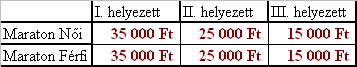 Pénzdíjazásban a maratoni versenyszám abszolút első 3 férfi és 3 női helyezett részesül.